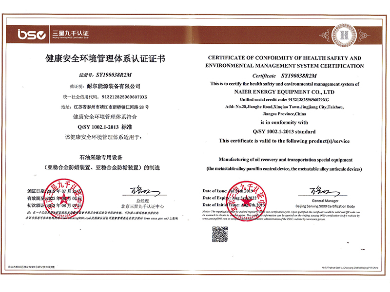 : 健康安全環(huán)境管理體系認(rèn)證證書