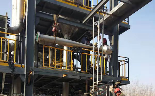 預熱后的物料進入一效強制循環(huán)泵入口,經過循環(huán)泵的作用,在加熱室循環(huán)加熱,然后在分離器蒸發(fā)分離,沸騰蒸發(fā)的蒸汽上升,濃縮液停留在系統(tǒng)內;當二、三效需要加料時,自控系統(tǒng)會自動把一效濃縮在轉料泵的作用下, 分別送入二三效,當二效、三效晶漿濃度達到設計值要求時同時排出分離器;晶漿首先進入稠厚器增稠,再進入離心機固液分離,得到固體產出系統(tǒng),母液全部返回預熱系統(tǒng)